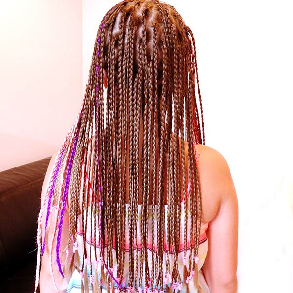 2. Az afrofonás védőfrizura szerepe: Hangsúlyozzuk, hogy a fonatok gyakran védőfrizuraként is funkcionálnak. Ez azt jelenti, hogy a fonott haj kevesebb hőt és mechanikus igénybevételt szenved, mivel a fonott hajat nem kell fésülni, festeni, dauerolni, és egyébb hajroncsoló hatástól is védve van, például a napi formázástól vagy hőkezeléstől, így a fonatokban lévő hajszálak hosszú távon megőrizhetik a haj egészségét.